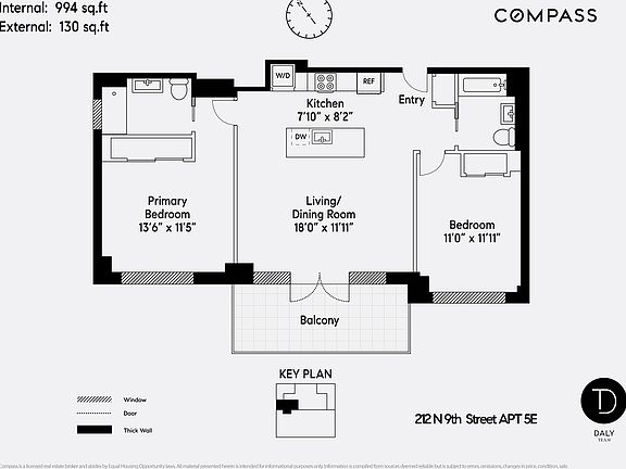 This 994 square foot apartment home has 2 bedrooms and 2.0 bathrooms. This home is located at 212 N 9th St APT 5E, Brooklyn, NY 11211.