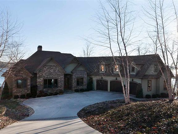 Beauty defined is how one would describe 212 North Beacon Shores Drive. Located on a northeastern facing peninsula, this impeccably designed home features the highest quality detail to match it's expansive open water and mountain view setting. Custom built in 2010, this Kisker Construction masterpiece offers luxury and comfort in every selection with loads of intricate detail for the discerning buyer. There is something for everyone in the numerous entertaining areas both inside and out. Upon entry, the large palladium windows greet with nothing but crystal blue water and sky in sight. The vaulted great room is accented with wood stain beams and a stone natural gas fireplace. The gourmet kitchen features custom cabinets and granite counters with an oversized granite farm sink overlooking the lake and mountains. The appliance package offers a Wolf six-burner gas cooktop with grill and custom grill hood, double ovens, a Subzero refrigerator, wine cooler, drawer microwave and super quiet Bosch dishwasher. The home office features a stain coffered ceiling and custom bookcases highlighted by large windows. Around the corner is the master suite highlighted by a specialty tray ceiling with accent lighting, large windows with an expansive water and mountain view and independent his and her closets with cabinet storage and custom design. The bath offers quartz counters, a jetted tub, individual vanity spaces, make-up desk and a walk-in tile shower with multiple heads. Off the kitchen and dining area is the classic staple in lake living, the four-season porch. This oversized gathering favorite features a second gas-log stone fireplace, ironwood floors, vaulted wood ceiling and eze-breeze sliding panels for easy conversion in any season. On the terrace level there is a large recreation and secondary living area with a custom full bar with wine cove. Features include a refrigerator, wine cooler, ice machine and mirrored shelving. A theater room with sound system and projector are great for watching a classical movie or favorite sporting event. Two en-suite bedrooms are included on this level, both with water and mountain views from the entire lakeside. Just outside is a covered patio with a third stone fireplace, this one wood-burning with a gas starter, and is accented with a slate floor as well as included in the home sound system. A level outdoor pool area features a 25,000 gallon low maintenance salt water pool overlooking the lake and mountains. The paver walkway leads to a steel covered double slip dock with ironwood decking and lift. Landscape features include accent lighting, irrigation from the lake, a fish pond and waterfall, patios and walkways with pergola and swing. There is also an oversized three car garage with an ideal private bonus suite above. The fourth bedroom, used as a guest or in-law suite,offers a spacious living area with kitchenette, private full bath and separate bedroom. This private retreat is also accented by large water views and is accessible to the home sound system. Please contact the listing agent for a full detailed list of features, too many to list here. Experience a lake lifestyle like no other, schedule your private viewing of this property today!
