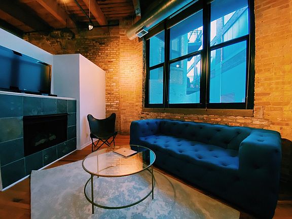 Fulton Market loft with exposed brick and 16 ft ceilings conveniently located on the Google campus. Just 1 block from the Morgan Green/Pink line stop, the bustling Randolph Street corridor, close to all expressways. Features: Free high speed internet, Free cable TV. New appliances, freshly painted, new carpeting in bedrooms. In unit washer/dryer, dishwasher, microwave, eat-in kitchen, granite counters, jacuzzi soaking tub, fireplace. Plenty of free street parking