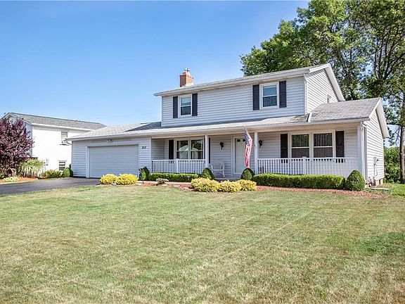 Buy this awesome house now! Welcome to 212 North Creek Crossing.. You are welcomed into this property by the wonderful front porch that graces the front of the house.Enter thru the front foyer to find a formal Dining area (once was a living room that could be converted back)Beautiful laminate floors lead you to a newly remodeled kitchen with Dark Maple Cabinets and beveled edge counter tops. NEW fridge and Microwave ..All appliances stay! Door leading to over-sized Deck overlooking Peaceful rear yard with mature trees and Shed Great room with Brick Gas fireplace and tongue and grove cedar accent walls.. Light Grey wood Laminate floors and newer carpet. Full basement, Vinyl siding, 2.5 car garage, Replacement windows, Whole house generator, Newer Blacktop Driveway Lovely area! Sold 'AS IS"
