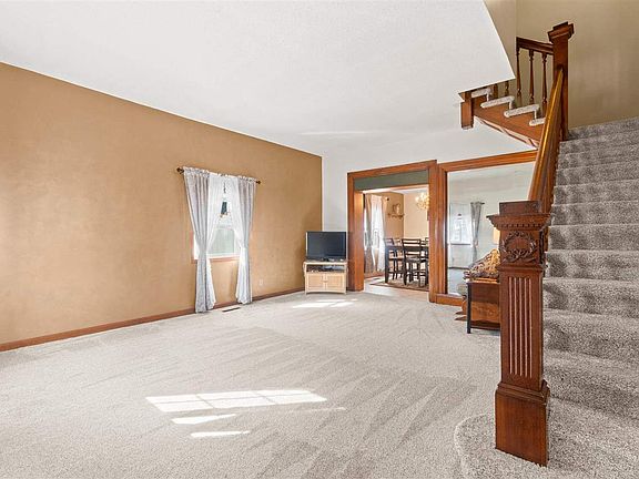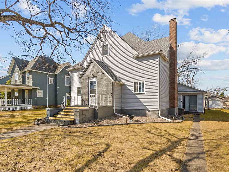 This beautifully renovated 1910 1.5-story home in Keota blends historic charm with modern updates. A welcoming foyer leads to a spacious layout featuring a large eat-in kitchen with abundant cabinetry, stainless steel appliances, and both a casual dining area and a formal dining room with a built-ins. The main level offers a spacious living room with new carpet, a great room with a cozy fireplace, a primary bedroom, a full bathroom, and a bright bonus room off the attached one-car garage. The main-level laundry closet is conveniently located in the kitchen. Upstairs, you'll find three additional bedrooms and a large full bathroom. Outside, enjoy a wraparound deck, a fenced-in yard for added privacy, a new garden shed, and ample green space. Located within walking distance of the school and downtown, with a park just across the street, this home is in an excellent location. Recent updates include new siding and windows. With an unfinished basement offering extra storage, this home is move-in ready—schedule your showing today!
