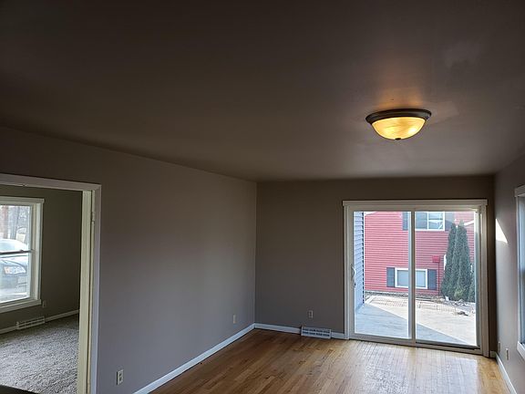 Newly renovated 2 story duplex. The first floor includes a large living room with new carpet, a dining/great room with hardwood floors, 1/2 bath, and kitchen which includes stove, refrigerator, and dishwasher. The second floor has a big master bedroom with new carpet and a walk in closet, 2nd and 3rd bedroom with hardwood floors, and a full bath with tiled tub/shower surround. The duplex also has a full unfinished basement with washer/dryer, a one car garage, and a patio. Pets are not allowed. No smoking in the unit. Tenant responsible for all utilities, mowing, and snow removal
