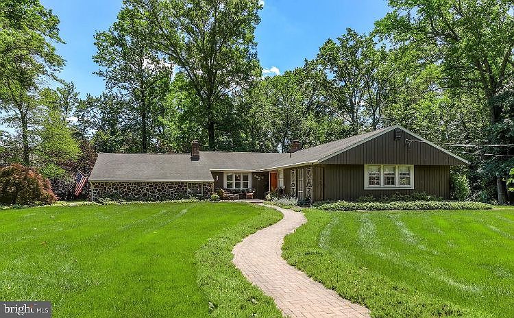 "Picturesque" best describes this remodeled 4 bedroom, 3 full bath rambling rancher. Situated far back off the road, this fieldstone and wood California inspired rancher comes complete with a long winding driveway for plenty of parking. This beautiful home is truly a gardeners delight. You'll feel the pride as you walk up the refreshed landscaped pathway lined with flowering ground cover and greeted by a front courtyard patio.? These sellers have spared no expense to transform this exceptional setting into a House and Garden front cover when in bloom.?Looking for an open concept??? Here it is!!? Enter the wide spacious foyer which opens to a large gathering room, gourmet kitchen and dining area that can seat 20 if need be. This entire area was thoughtfully redesigned by removing support walls and opening up the kitchen to overlook the front family room with triple window, brick fireplace and built ins.? The renovation allowed the creation of a huge center island with seating for quick meals and enough counter space for entertaining a crowd.?There is recessed lighting in the soaring vaulted ceiling and oversized?Ivory travertine flooring.? An entire wall of custom solid wood cabinetry was added to provide plenty of storage and additional counter space with granite countertops. Stainless steel Refrigerator, DW, ?5 burner gas cook top, wall oven and built in microwave complete the package. From this open concept renovation you step down into a large living room with hardwood floors, wainscoting and sunlit windows overlooking the gorgeous yard and a 2nd wood burning fireplace. The main hallway leads to 2 generous sized bedrooms with ample closet space, a hall bath and a master suite.?The thoughtfully?expanded master bedroom with en suite?bathroom has a sumptuous soaking tub, ?large walk-in shower with custom stone tile, ?frame less glass enclosure, double sink vanity and small built in linen closet.? A?huge walk in closet with closet organizers was added. There are custom features through-out the home including built ins, upgraded lighting and MANY custom made touches. Off the kitchen is a nice sized 1st floor laundry room with access to the oversized 2 car garage with built ins and an open stairway to the fully finished basement.? WOW, WOW, WOW!!!? the HUGE, full?finished basement is like another whole house beneath but with fun and entertaining in mind. There is a large game room with an enormous IRISH PUB BAR?complete with sink and wine refrigerator, a movie viewing area (seating included) plus a 4th guest bedroom (with egress) and a full bathroom with walk in shower. All of the flooring is wood look porcelain tile planking--truly well done.? Recently the entire rear and side yard of the?approx. 3 4 acre sprawling lot has been regraded, sodded and seeded for added beauty and more usable space. The private, peaceful setting sets the pace of a wonderful but serene lifestyle .Better hurry..........large ranchers in highly desirable Moorestown do not last long.