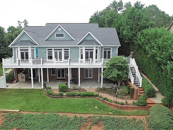 Spectacular main lake & sunset views from this vantage point! Beautifully designed 5,205 sqft home offers an inviting yet elegant welcome to Lake Gaston. Open main level & several sets of lakeside atrium doors to take advantage of the main lake views from the comfort of the LR & beyond. Formal LR w/ FP & separate dining. Great kitchen w/ granite countertops custom cabinetry, 2 sink/prep areas, island w/gas stove 2 eat-in bar areas (seats 9 total) for informal dining or chatting with the chef-at-large. Private lakeside Master Suite & Master BA. Lower level fmly room, kitchenette, Master Suite & BA, 2 add'l BR & BA. Upper level undesignated room, small play area, BA & home office too! Many more details! Walkway to double boathouse with sundeck for waterside entertaining or relaxing. Lake Gaston restaurants, marina & other essentials all a short boat ride or car ride away.