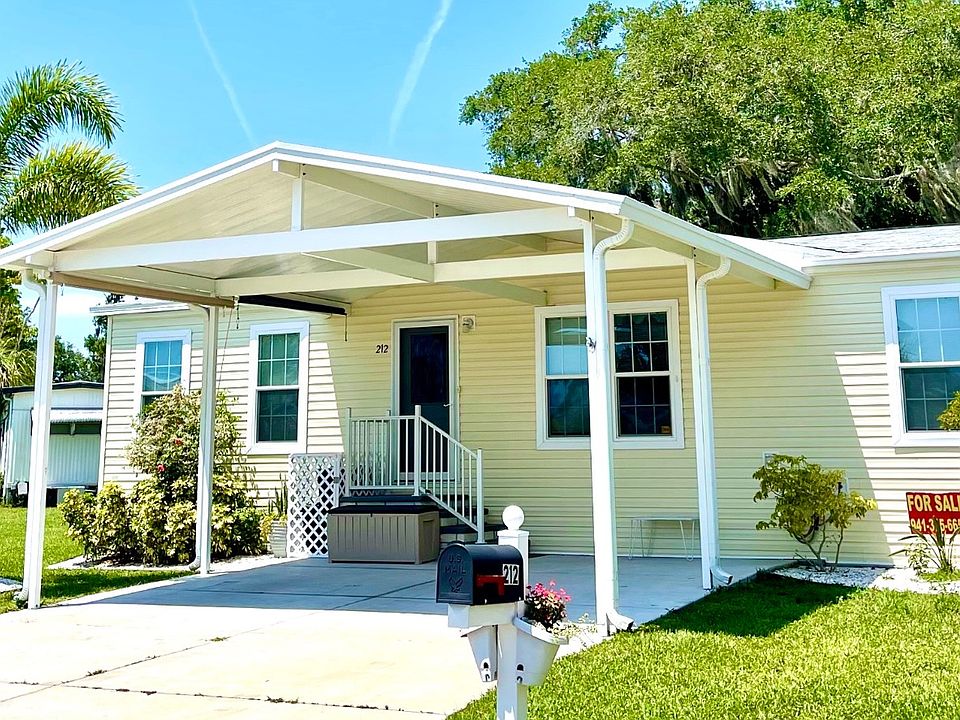Welcome home! Whether you're looking for your forever Florida home or your snowbird dream oasis look no further, this is the one! This lovely to 3bd, 2bth Champion model home is just steps away from Friendship Hall and pool (one of six pools) in the highly desired resort style 55+community of Colony Cove in Ellenton, Florida. Enter your home into the generous size living room with plenty of space for entertaining your guests, watching the game, or cozying up for a movie. You'll enjoy creating your meals in this beautifully appointed open concept kitchen with tons of cabinetry and storage, large corner walk-in pantry, one of a kind matching farmhouse sink with window overlooking your shaded patio to see the beautiful backyard. Conveniently located just off the kitchen you'll find your in-home laundry room with newer washer/dryer & plenty of shelving/ storage for all your laundry needs. Tucked away at back of the home is the screened in lanai complete with pulldown shades, television, and pass-through window to the kitchen for sharing morning coffee or evening cocktails while you enjoy the Florida breeze in your backyard sanctuary. The large master bedroom offers space for a king size bed and bedroom set and has a double door full length closet for your hanging items. In the master bath you'll have plenty of room for two at the side-by-side vanity with center storage & cabinetry, plus a whole wall of extra storage space for all your toiletries. Both guest bedrooms are on the opposite side of the home, as well as the beautifully finished guest bath. Your extra large carport allows for side-by-side parking and has an area for lounging to view the Gulf Coast sunset sky. This charming home is perfectly situated just a two minute stroll to Friendship pool and Hall where you can meet your friends for a dip, attend many of the club events, play shuffleboard, and more. Lot rent is $850 per month and covers water/sewer, trash/recycling, lawn care, and amenities. Colony Cove's resort style living is like no other with 6 pools, 5 halls, Manatee River Pavilion with Fishing Pier, Colony Cove Marina, Picnic Island with picnic areas, dog runs for both large and small fur babies, & kayak launch. Colony Cove also has a wood-shop, pool hall, 2 fitness centers, the Colony Cove Farm, Pickle-ball, shuffleboard courts, and libraries at every hall, laundry facilities, over 70 clubs to join, the Colony Cove fun bus to take you on shopping excursions, and more! Colony Cove is just 14 miles to Anna Maria Island, 19 miles to the award winning Crystal Sand beaches of Siesta Key in Sarasota, & less than 30 miles to Tampa Bay/St Pete area to the north with all the dining, entertainment, sports, cultural events and shopping your heart desires. Why wait? Call today and make this lovely home your own! All listing information is deemed reliable but not guaranteed and should be independently verified through personal inspection by appropriate professionals. Integrity Mobile Home Sales cannot guarantee or warrant the accuracy of this information, measurements, or condition of any property. Measurements are approximate. Lot rent subject to change