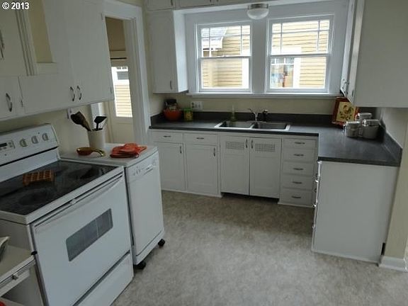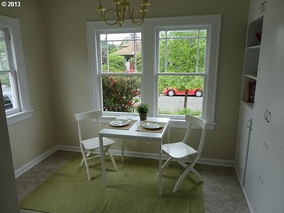 Quaint, charming bungalow on a quiet street, minutes to shops on Stark. Mahogany in-laid hardwood floors, original doors, trim, & cabinetry. Classic fireplace w/built-ins, large kitchen w/white cabinets & eating area w/built-ins. Fresh interior paint, clean basement w/plenty of storage. English garden w/patio, large oversized 1-car garage, organic garden!