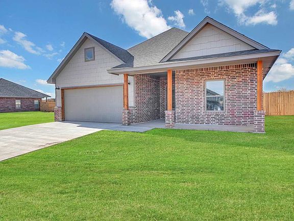 Absolutely beautiful quality new home by Tate Homes. Great curb appeal, covered front porch and large covered back patio. 4 Bedrooms, open floor plan. Large living area, corner gas log fireplace. Awesome kitchen, big island breakfast bar, quality cabinets, beautiful granite countertops throughout, large dining area, stainless steel appliances. Large secluded primary bedroom with own sitting area, luxury bath, deep tub and separate beautifully tiled walk-in shower, large walk-in closet is connected to utility room. 4th bedroom can be study. Will have beautiful tile floors throughout, bedrooms will have carpet. Call listing office 580-248-8800 or text 580-581-7870 for private showing and more details. Minutes from Lawton-Ft. Sill. Grat Cache schools. Small town community.