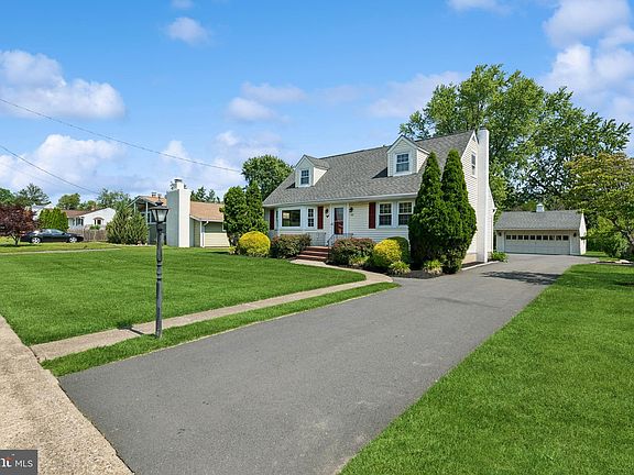 CHARMING IN HILLWOOD MANOR! This tidy Cape Cod draws you in right from the curb with its double dormers, pleasing palate, and shrubs providing colorful contrast, with a red brick porch highlighting the burgundy shutters and front door. The appeal continues as you step into the wide sunny living room with a walk-out bay window. The dining room, straight ahead, pulls you through a broad arched doorway, while a matching arch on the opposite wall opens into the ample family room at the rear of the home. The brick fireplace and a long box bay window are the highlights of this comfortable room. It also has a convenient backdoor. A bright, cozy kitchen with seating for two is tucked to the side of the dining room and opens at its rear to the family room. Six-over-six windows, arched doorways, and rich original hardwood floors flowing from room to room are evocative of an earlier time. Down a hallway are two bedrooms, a full bath, and access to the basement. Upstairs are two additional bedrooms with new laminate floors, access to the attic, and a second full bath. The full basement with 7-foot ceilings, laundry area, and an exterior door provides great potential as additional space for an office, workshop, storage, or playroom. The detached two-car garage is generous in size, thoughtfully designed, and framed with wooden beams that couldn't be found today. It was the creation of the home's second owner and his son-in-law — obviously a labor of love. This cottage was cared for and updated as the years went on. There is fresh paint throughout the home. The hot water heater is two years old, Heil furnace and a generator for the first floor were installed in 2024, and a new dishwasher was just put in place. Convenient location, close to TCNJ, Rte 1 shopping, Princeton, Pennington, easy access to Rts. 31/295/95, convenient to the Hamilton & Trenton Train Stations and Mercer County Airport. Forty-five minutes to shore, Lambertville, and New Hope. DO NOT MISS THIS GEM!!!
