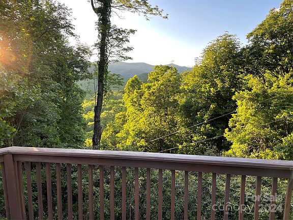 This updated 2BR2BA home sits on 4 acres of woodland ridge overlooking the Garren Creek valley, with year round distant views of several ridge lines. The main floor is 1166 sf. The daylight basement with separate exit contains a bonus room and storage, comfortable year round but without direct forced air, hence non-hsf. Upstairs are hardwood floors and multiple large picture windows, framing the view. The updated kitchen has quartz countertops, new appliances, and pantry. A large natural stone fireplace in the living/dining space highlights the open floor plan, with cathedral ceiling. A wide wood deck wraps the front of the house and a private roofed and screened deck opens off the main bedroom. Both bedrooms have walk-in closets, and the main bedroom has en-suite bath. Parking for at least 4 cars in front of the house on gravel driveway. The broad, two lane driveway to the house is shared with a single neighbor residence. Landscaping is low maintenance. Owner licensed NC Realtor.