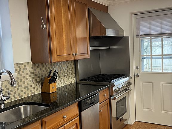 One floor living just minutes from downtown New Canaan! Located close to the Merritt Parkway, shopping, restaurants and train. This two bedroom unit is on the first floor of a two-family home and includes 2 off-street driveway parking spaces. Ample storage, newer full bathroom with tub, updated kitchen with granite countertops, stainless steel appliances including a professional-grade gas stove, dishwasher, refrigerator and washer/dryer. Hardwood floors throughout living room, dine-in kitchen and bedrooms. Primary bedroom includes large walk-in closet and second bedroom makes a perfect office or second bedroom. Level, shared fully fenced-in backyard in addition to private terrace off of kitchen. This rental has it all and pets are welcome! Tenant responsible for credit check, application, rental insurance, all utilities including heat (propane), electricity, cable/internet. 1st months rent and 2 months security (one month if 62 or older) at signing of lease. Landlord reserves the right to meet potential tenant/s. Good credit a must.