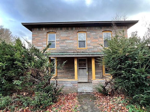 This unbelievable, solid home has stone masonry exterior, 3BR, 2 baths, large LR, a 1st floor BR with 2BR, 1 bath, & Cedar closet in sizeable hallway upstairs, hardwood floors throughout, basement has French drain with sump pump, attached carport, 2 car detached garage, nice garden area, and a small stream at edge of property, plenty of potential!