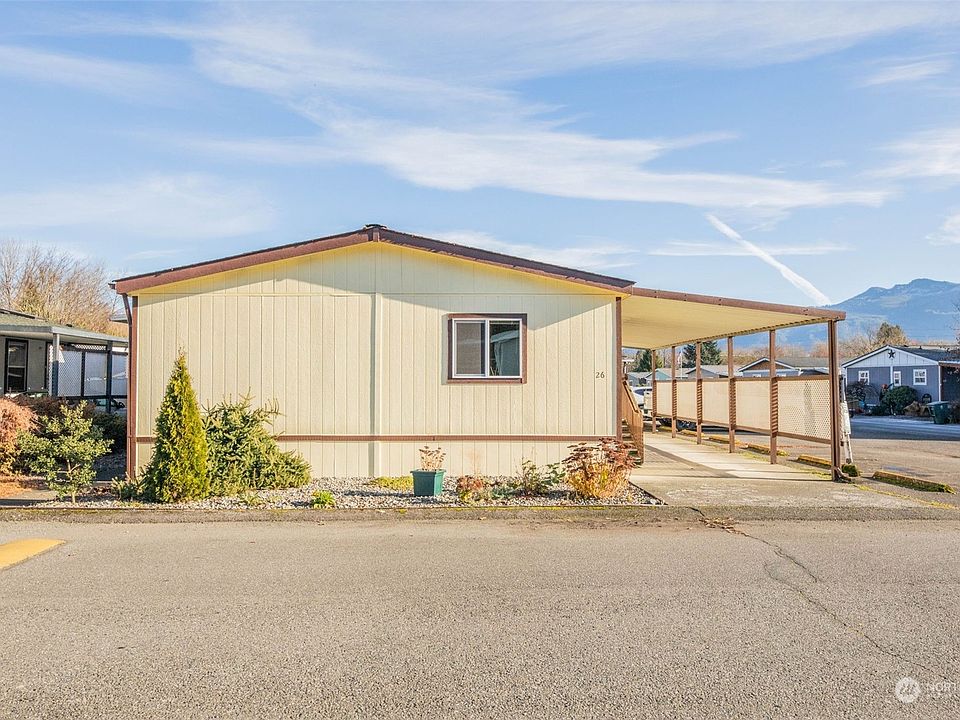 Welcome to this spacious home in the desirable Cherry Hill Estates 55+ park! The 1404 sq foot open floor plan is perfect for entertaining with vaulted ceiling, large dining area and living room, 3 bedrooms and 1.75 baths. The huge primary bedroom with en-suite bath has a soaking tub and separate shower with a large walk-in closet. The second and third bedrooms are located on the opposite side of the home from the primary. The main bath has been recently updated with a large walk-in shower. Your home is complete with mud/laundry room, extra storage and washer/dryer. The exterior was recently painted with new double-pane windows. 2 storage sheds with power in one make the perfect hobby shop! Large carport and covered patio area too.