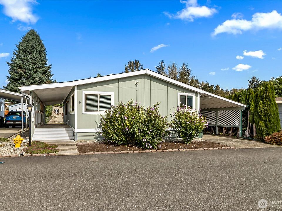 Immaculate 2-bedroom, 2-bath, 1,396 sq ft home in the desirable 55+ Cherry Hill Estates. Features include a light-filled Living Room & Dining Room, a well-appointed Kitchen with white cabinets, bar seating, newer glass cooktop, new dishwasher and lightly used oven. Large Primary suite offers walk-in closet and private bath, plus a spacious 2nd bedroom & full hall bath. Beadboard accents add charm, while laminate flooring and faux wood blinds create a clean, modern feel. Laundry Room with Washer/Dryer. Beautiful Landscaping, extended Front Porch, oversized 2-car Carport with custom Ramp, and double Shed for extra storage. Move-in ready and meticulously maintained, this home combines comfort, convenience, and style in a welcoming community.