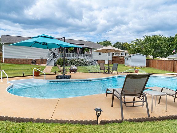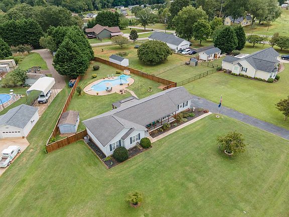 No HOA, an in-ground saltwater pool, and over half an acre with a fully fenced backyard—this 3-bedroom, 2-bath ranch in Campobello truly has it all. If you’ve been waiting for a backyard your neighbors will envy, this is it. There’s ample space to park a boat or RV, multiple storage buildings to keep everything tidy, and a spacious back porch ideal for entertaining. The centerpiece is the large in-ground pool with fountains, creating the ultimate outdoor retreat. Want space to garden, room to play, or the perfect yard for pets? This home checks every box. Inside, a well-maintained layout offers both comfort and function. The living room’s vaulted ceilings create an airy feel, and the bright kitchen features granite countertops. The primary suite includes a walk-in closet and an upgraded tiled walk-in shower, while two additional bedrooms and a full hall bath provide plenty of room for family or guests. A two-car garage and additional parking make day-to-day living easy. Set in a small neighborhood with a welcoming, country feel, this home invites you to slow down and enjoy the simple pleasures—sipping coffee on the covered front porch or relaxing by the pool in your private backyard oasis. Schedule your private tour today!