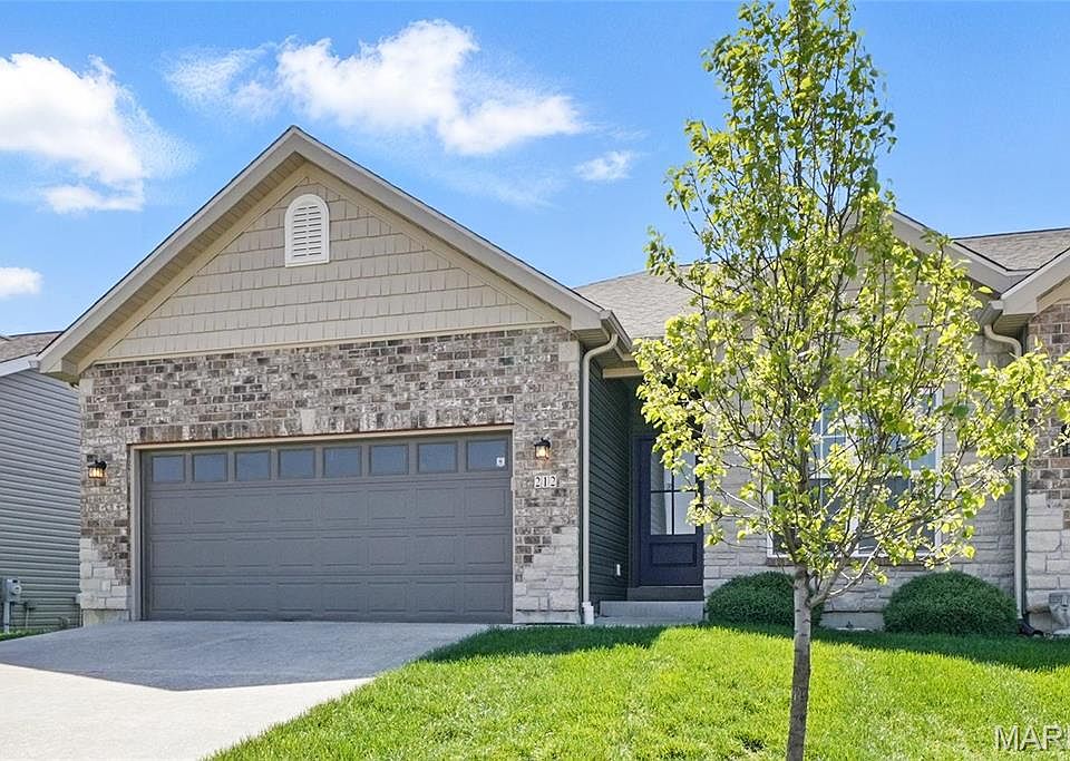 Welcome to this beautiful villa, perfectly situated in the heart of Wentzville. Enjoy the luxury of everything on the main floor in this thoughtfully designed home. The spacious primary suite is a true retreat, complete with a stunning primary bathroom featuring a large walk-in shower, double sink vanity, and a generous walk-in closet. An additional second bedroom on the main level offers comfort and convenience, paired with a full bath nearby, making it perfect for guests or family. The main floor laundry adds to the home's ease of living. The kitchen is a chef’s dream, equipped with quartz countertops, custom cabinetry, under-cabinet lighting, and a pantry for ample storage space. The open and inviting great room boasts luxury vinyl plank flooring and a striking coffered ceiling, providing a touch of elegance and sophistication. This home combines style, functionality, and the convenience of main-floor living—ideal for those seeking comfort and luxury in a central location. Location: End Unit
