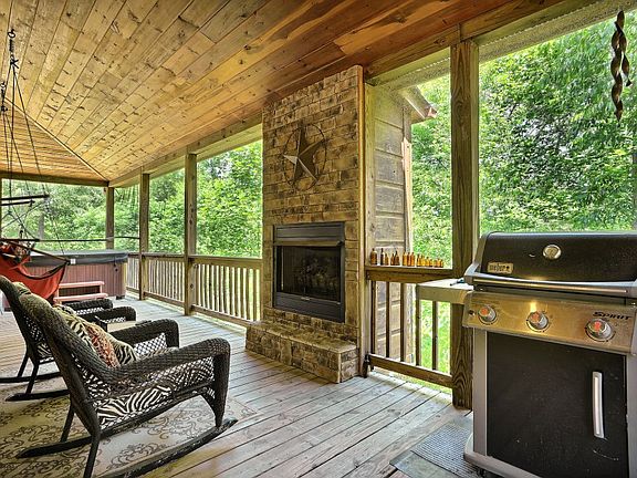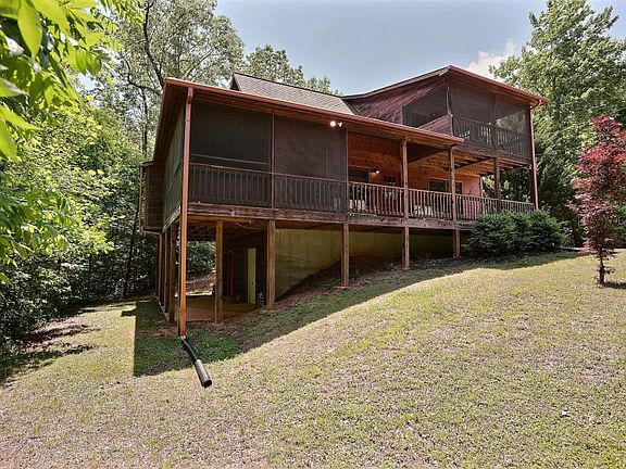 Get-Away or Rental Cabin? Versatile custom cabin awaits you in Spring Creek in Blue Ridge, GA! Looking for a mountain view cabin to retreat to or perhaps a great rental investment? Look no further?this affordable cabin is the place! Features mtn view wrap-around deck w/ screened-in outdoor great room w/ FP. Gentle lot w/ plenty of parking & very easy access is another plus. Cabin style interior is designedwith open concept in mind. Great room w/ vaulted ceiling & stacked stone FP is well lit. Eat-in Kitchen is just the right size to whip up your favorite meal. Large Master suite on the top level with jacuzzi tub &, private balcony will be your haven of peace. Unfinished terrace level is stubbed for additional bath and could be a fabulous game or theatre room! Enjoy the mountain life here!
