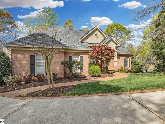 Welcome to picturesque living at Smithfields. This stately traditional home with circular driveway defines curb appeal and welcomes you inside with an impressive foyer, gleaming hardwoods, and breathtaking long range fairway and pond views. Terrific floorplan provides great separation of living spaces while maintaining simultaneous flow. You will love the volume of the great room with its high ceilings, gas log fireplace, and convenient position adjacent to the kitchen and rear deck. Entertaining is a delight with the spacious kitchen featuring center island, granite countertops, gas cooktop, and tons of cabinet space all while being steps from the formal dining room and breakfast area. Primary bedroom on main level is a true sanctuary with its abundance of square footage, ensuite full bathroom with standup shower and separate garden tub, walk-in custom closet, and direct access to the screened porch. On the opposite side, you will find a similarly impressive 2nd primary suite with cathedral ceiling and full bath also with direct access to the rear deck overlooking the golf course. Steps away is the convenient laundry room, additional full bathroom with standup shower/tub combo, and another guest bedroom that is filled with light and also makes a great home office. Living big continues as you make your way to the fully finished walkout basement. Perfect setup for a family needing their own space, a live-in relative, or for additional entertaining. Second great room with half kitchen is surrounded by windows and really captures the natural beauty of this amazing lot with direct patio access. A 4th bedroom with full bathroom is located on this level and provides unmatched versatility for a variety of uses. Exterior space speaks to the demands of today's buyer where country club living is embraced with a screened porch and massive deck with hard-piped gas grill overlooking postcard golf and pond views. 2 car side entry garage leading to the main level and side entry golf cart garage leading to the basement level take living in this location to the next level. Optional club membership puts great amenities of golf, swimming, and pickleball at your fingertips that will only continue to improve under new ownership. In a prime position within the Easley city limits, this convenient home puts you minutes from Easley shopping and dining, I-85, and downtown Greenville all while having the option of club membership. Whether you are a golfer or just want to enjoy a home in a serene setting, this turnkey property with new roof is ready to welcome you home!