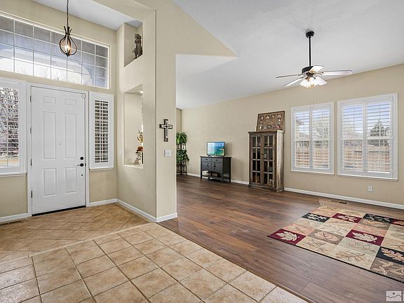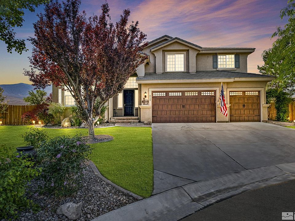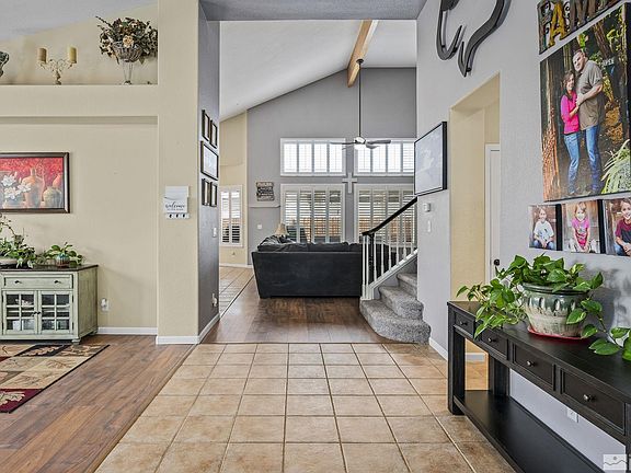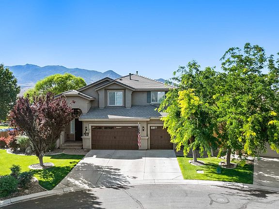 Welcome to this one-of-a-kind, lovely, peaceful, resort-like setting on a .30 acre lot, spacious 3,281 sq. ft. home featuring 5 bedrooms, 3.5 bathroom, 3 car garage with upgraded garage doors. Elegant open-concept floor plan, stylish interior, new carpets, upgraded flooring, vaulted ceilings in the foyer and family room, a gourmet kitchen, abundance of Cherrywood cabinet space, quartz countertops, large walk-in pantry, and breakfast nook. Windows throughout are enhanced with.... plantation shutters, an abundance of light and stunning views of the mountains. Master bedroom is located on the main floor with a sliding door, access to the back patio and hot tub, large master bathroom with a jetted tub and walk-in closet. Head upstairs to 4 bedrooms and 2 bathrooms, each with majestic mountainous views and two HVAC units. Professional landscaping featuring beautifully manicured yards, mature trees, devoted patio space, large paver patio with 3 sets of pergolas extending the width of the home, classy paver patio deck and peaceful walking path, tranquil waterfall oasis ready for entertaining or a private retreat. Added bonusno rear neighbors and unobstructed serene stunning mountain views. Close to Carson City, the prestigious state capital, access to Tahoe and Reno as well as historic Virginia City, convenient gateway to Highway 50 and the nation's largest industrial park. Room for toys, endless recreational areas and more. 3D Virtual Tour Available. This home is move-in readyMOTIVATED SELLERS!!!