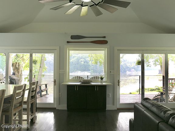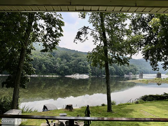 Extremely rare opportunity to be on a waterfront Delaware River property. Just steps away from the River. Sit on the back porch and watch bald eagles or enjoy fishing, canoeing, kayaking & swimming.The views are endless! Private dock for easy access. Great space for entertaining, 2 covered porches, concrete slab patio for additional outdoor living. House has many upgrades including a chefs kitchen, hard wood floors, new HVAC system, Generac whole house generator, new vinyl siding, new roof, additional neighboring vacant lot, 3 car garage and much more! Only 1 mile to Route 80, shops & restaurants.Located on a private road, but close to so much. House is owned & occupied by a licensed Pennsylvania Realtor.