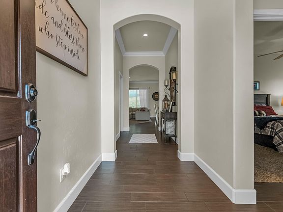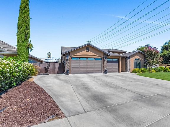 Beautiful custom home in northeast Tulare with expansive open split floor plan, perfect for entertaining. Kitchen has a large island with upgraded stainless appliances. Dining area with patio access opening onto the lush backyard. Living room with fireplace and built-in shelving. Primary suite features large walk-in closet and a spa like bathroom with a double vanity. Three additional bedrooms and two bathrooms. Oversized laundry room with sink. Three car garage with storage. RV parking.