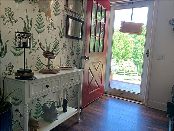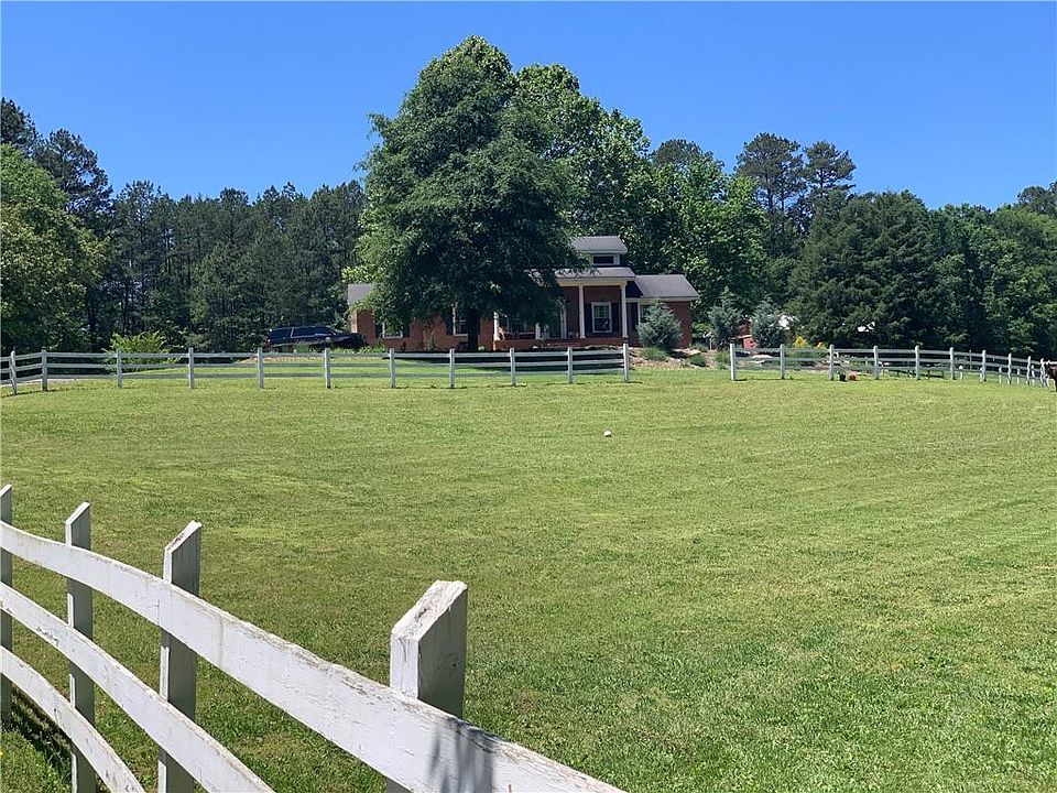 An amazing established small farm with a barn and pastures. This colonial brick home sits on 5+ acres with a relaxing front porch which allows you to enjoy sitting and listening to nature. This home offers an open living and dining room with a fireplace. Galley style kitchen. A large room off the living area is being used as a master bedroom but this room has so many possibilities. There are 3 more bedrooms on the main level. The original master suite with a full bath that includes shower only. Upstairs is a 19.9 x 15.7 bonus room with a closet. This to has many options- bedroom, craft room, den or play area. There is a 2 car garage. On the back side of the home is a fenced in patio, pergola, and fire pit area. The back acreage is fenced in with chickens as well as an area with raised beds for gardening. You will LOVE the 4 stall barn and lots of space for tack and storage. Covered area for dry space for animals. Owners currently have goats, chickens and a donkey. This property is country living in the city. One section of this property is in the city limits.
