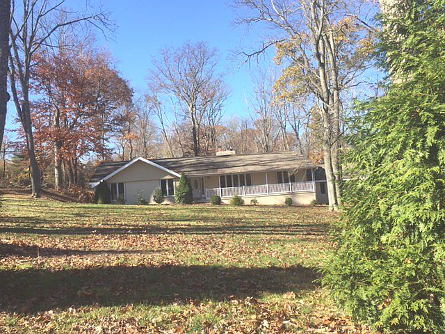 One floor living with room to roam! This ranch style home greets you with an old fashion covered porch complete with rocking chairs! And what a view! Enter into an open living room with a stone wall accent and floor to ceiling windows, enjoy the natural light as you entertain or just relax with a good book. The dining room is again bathed in natural light and opens to the living room and kitchen. The kitchen is a cook's delight, lots of cabinets and more importantly drawers, the maple cabinets are nicely accented by the granite counters and completed with a breakfast nook with sliding glass doors to the large custom deck. The wood accents including the hardwood floors throughout the house are just one of the details that make this home special. The family room rounds out the living area of this home and is delightful with it fireplace and adobe style ceiling. The master bedroom is a delight, large and comfortable with roomy closets, master bath and sliding glass doors to the deck. The natural light in this house will charm you. The house sits on an acre of land with open space and trees in just the right amounts. Don't let this one pass you by!