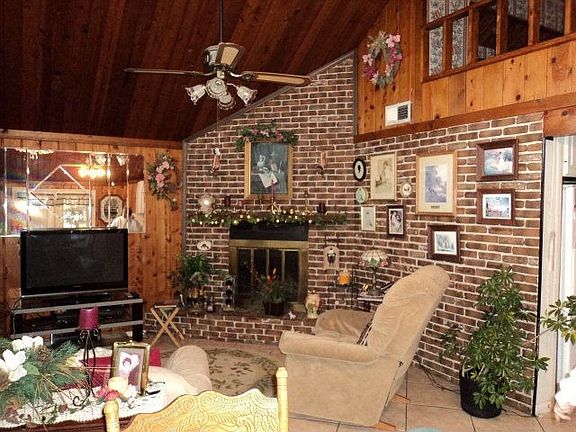 Nice Cozy home with cedar siding and wrap around porches, Pretty, brick wood burning fireplace with an upstairs loft overlooking the family room with Florida windows to enjoy the sunshine anytime! 3 bdrms and 2 baths,the loft can be used as a bdrm or bonus rm. If you are looking for that cozy down home country feeling then look no more this one is for you!!!