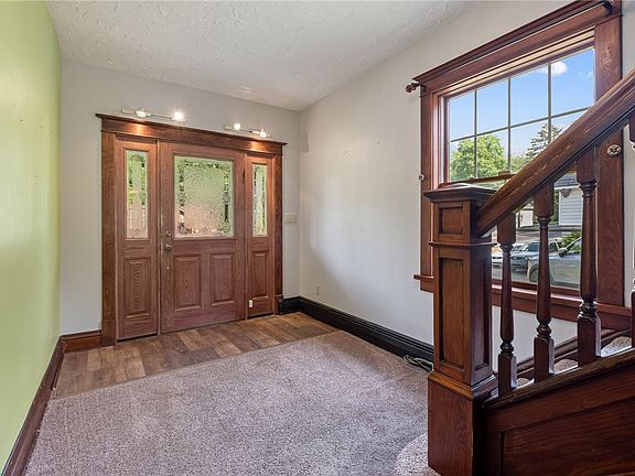 Welcome to this charming 4 bed, 2.5 bath, 2 car garage farmhouse set on .75 beautiful acres in the heart of Rochester. Enjoy a bit of history: named Beaver County Heritage Marker. Generations have made memories & now it's your turn to make traditions & enjoy homeownership! Wrap around porch to greet your guests or, as most do, backdoor guests are best. Welcoming & spacious kitchen w/ updated flooring, SS appliances, gas stove, stylish cabinets, exposed brick. So much character! Big family room w/ soaring ceilings & surround sound. Main floor 4th bedroom could also be used as a home office w/ private full bathroom. Convenient attached 2 car garage: 1 step to unload groceries. Half bath on main for guests. Beautiful banister leads to upstairs owner's suite w/ vaulted ceilings & skylight. Gorgeous updated full bath, 2nd floor laundry, 2 more bedrooms. Simply customize paint & move in. Finished basement game room. Ample storage in unfinished area. Explore true 3D tour in link.