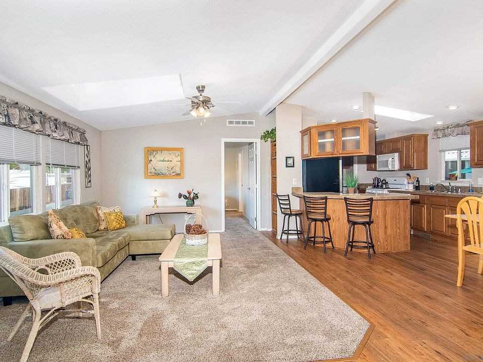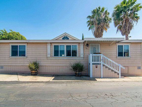 Senior 55+ park....Beautiful 2006 Manufactured 2br + den(Could be 3rd br) is move in ready! Vaulted ceilings, recessed lighting, open floor plan ,built-ins, double paned windows, skylights, breakfast bar, pantry + indoor laundry room. All appliances stay. Master retreat w/huge bath, linen and walk-in closet. 2nd Bedroom & den and Bath on the OTHER SIDE of Living area. Ideal floor plan. 2car tandem + small extra space for small car and 10 x7 shed; minimal yard care and space rent only $775 + utilities... Cheap living for San Diego! Dont let this one get away... Central location in established park.. walk to church, buses and ElKs, great breezes too! Only 25 min to Downtown SD or beaches or airport.