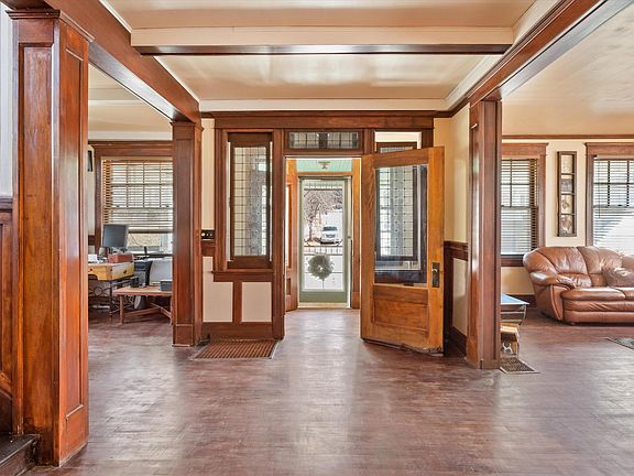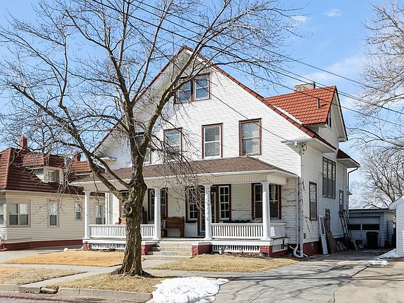 This stunning historic home is a must-see! The home is located in the Gibralter Historic Neighborhood of Council Bluffs Iowa. It has been completely updated with 90% of the materials repurposed from local sources. The east-facing porch is ideal for enjoying the morning sun & coffee. The interior features a spacious office/study, upstairs laundry capabilities, 4 generous bedrooms with spacious closets, 2 bathrooms, a formal dining room, and a large family room with beautiful hardwood floors. Ample attic space with tons of opportunity. Original solid wood pocket doors, main floor laundry room with walk in pantry. Two separate driveways and a large 2 1/2 car garage with plenty of space for a hobby workspace!