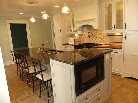- KITCHEN DESC: Eat In Kitchen, Pantry, Crown Mold, Smooth Ceiling, Tile, Granite Countertop, Kitchen Island, Recessed Lighting