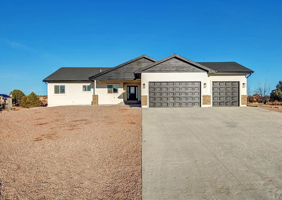 *PRICE REDUCED - MOTIVATED SELLER* Stunning Ranch-Style Home on a Corner Lot in Pueblo West This beautifully designed 5-bedroom, 3-bathroom ranch home with a walkout basement sits on over an acre in sought-after Pueblo West. The prime corner lot features modern curb appeal, an extended driveway, and a spacious 3-car garage. Inside, natural light fills the open-concept layout with vaulted ceilings. The chef's kitchen boasts brand-new appliances, sleek cabinetry, and granite countertops. Step onto one of two decks off the kitchen and living room to enjoy the Colorado scenery. The main level includes three bedrooms, including a luxurious primary suite with a spa-like 5-piece ensuite. A spacious mudroom/laundry area adds convenience. The finished walkout basement offers a large family room, wet bar, covered patio access, two additional bedrooms, and a full bath. Plus, enjoy year-round comfort with central A/C!