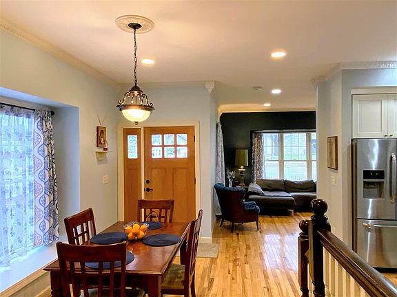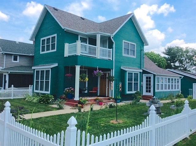 This charming home has been completely updated and renovated. 2014: new roof, siding, furnace, central air, water heater, water softener, windows, plumbing, electric, flooring. It still holds the old charm but has modern finishes and it's oh so cozy! 3 bedrooms and 2 1/2 baths with a sun room gives you great space but not overly sized. The main floor bedroom has a master suite. Also on the main floor you'll find laundry, another 1/2 bath and an amazing sun porch! 2 nice sized bedrooms upstairs, walk out balcony and a full bathroom. Beautiful hard wood floors throughout and tall ceilings. Stainless steel appliances are included, brand new washer, dryer. The garage is completely finished and heated! It has alley access and a bonus room in the back! Energy saving solar panels on roof.
