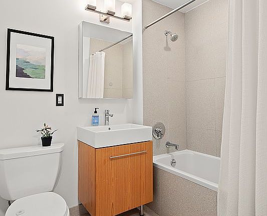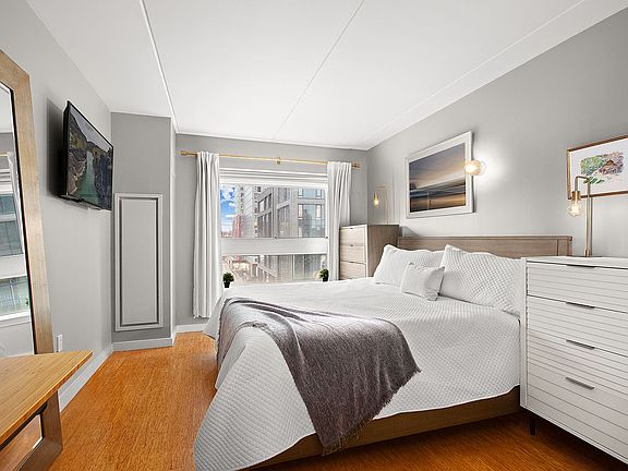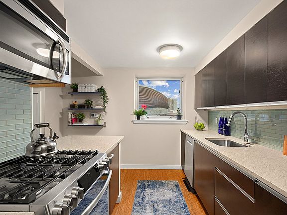 This pet-friendly building offers a full-time doorman, live-in superintendent, 2 elevators, a landscaped 3000-square foot common terrace with BBQ, and a common room with kitchen for events. Parking and bicycle storage are also available.