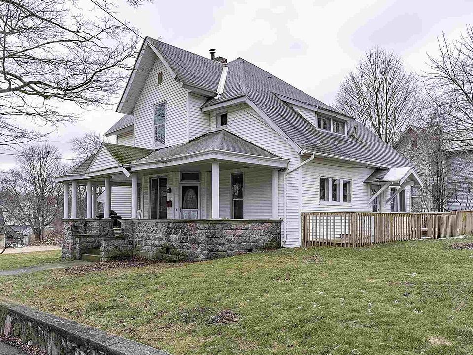 Downtown Charmer features many original historic elements of vintage homes and has some classic updates. Features include: original hardwood floors and woodwork, stained glass windows, built-in book shelf, and wrap around porch. There have been major mechanic upgrades which include 2 new gas forced heat furnaces, 2 new central air units, updated 200 amp electrical. There is an oversized back deck which is great for bbq's and family gatherings. The upstairs full sized bath has new vinyl plank flooring, new toilet, and double sinks. The stainless steel kitchen appliances remain with the home. There is a detached garage to use for excellent storage, parking and extra storage in the upstairs loft and with via staircase.