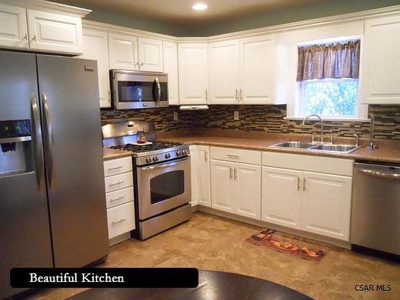 Move in condition vinyl sided home! Lots of updates. Living Room w/recessed flat screen TV. Beautifully remodeled eat-in Kitchen with all appliances included - white cabinets, mosaic tile backsplash. Main floor Bedroom or Family Room w/ sliding door to deck & double closet. Remodeled Powder Room. 2 large Bedrooms on 2nd floor - newer carpet. Vaulted ceilings - nice closets. Updated full Bathroom. Mudroom with access to back yard. 1 car Garage with automatic opener. Nice rear deck! Newer windows, sidewalks, front porch, doors.