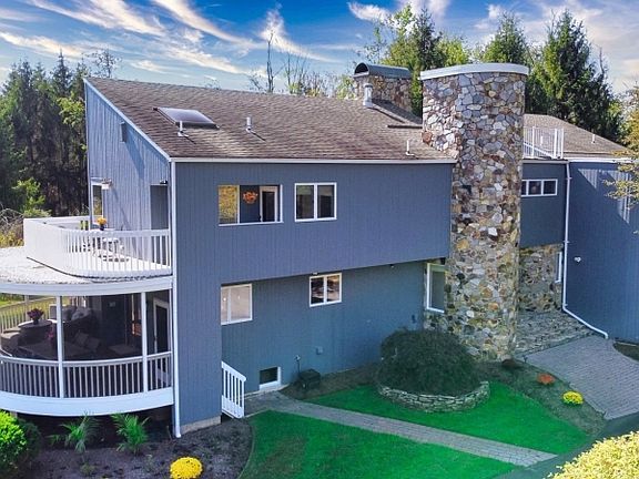 This architectural gem, a unique contemporary home with elements of mid-century modern and art deco, is truly one-of-a-kind. Renovated over the last two years, this beauty is turn-key. The home sits on just over 16 acres. Driving up the tree-lined drive, it is hard to believe you are just an hour from Philadelphia, an hour and a half from NYC, and just 30 minutes from Princeton. Once inside, the home is a welcoming place full of rich textures and natural light. The kitchen is equipped with high end cabinetry and appliances, complimented by a stunning backsplash and quartz countertops. All of the oak hardwood is beautifully finished, and perfectly matches the extensive wood treatments throughout. The primary suite offers a spa like bathroom. The other three bedrooms are all generously sized and each is unique. One is the most private, one features a loft and a balcony, and the other is well-suited to an office. The basement hides a sauna and a wet bar. There is an unfinished portion of the basement with high ceilings, and a staircase leading to the exterior. Outside you are treated to multiple decks and patios, acres of fields and woods, and the property borders Alexauken creek, with several trails running through the property and down to the water. There's so much exploring to do, without leaving home. Besides the attached 2 car garage, there is also a 4 car detached garage for your workshop and hobbies. The new owner could take advantage of a farm assessment if they choose.
