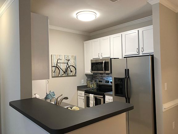 Beautiful updated 2nd floor condo in desirable Sunset Ridge. Great open floor plan. Laminate hardwood flooring, new carpeting in master, freshly painted, new lighting, ceiling fans, 9-foot ceilings. Amazing custom master closet. All appliances including washer/dryer and refrigerator. Peaceful covered patio with ceiling fan. Secured building with indoor mailbox. Water included in rent. One small pet under 25 lbs allowed. $40 application fee. Owner pays water and garbage.