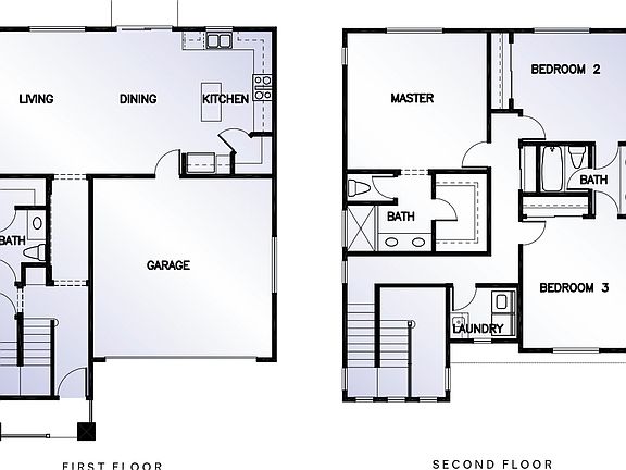 This 2 story home design consists of three bedrooms and two and a half bathrooms, one of which has a "Jack and Jill" floor plan. The first floor has an airy kitchen concept with a grand living room and an inviting dining area to complement your entertaining experience. Upstairs, you will enjoy the spacious master retreat with vaulted ceilings, walk-in closet, and a couples vanity area. An accommodating laundry room is easily accessible right down the upstairs hallway.