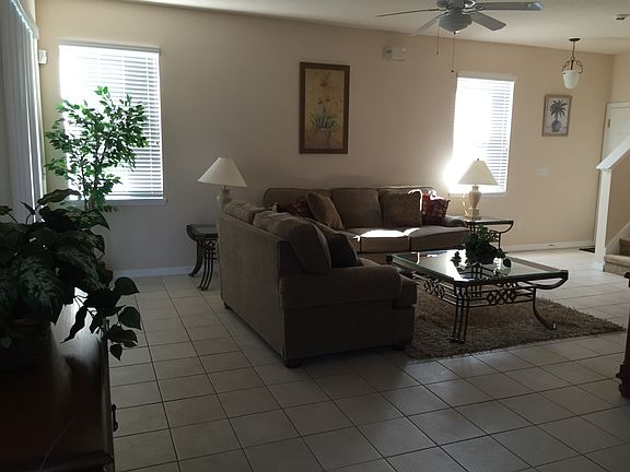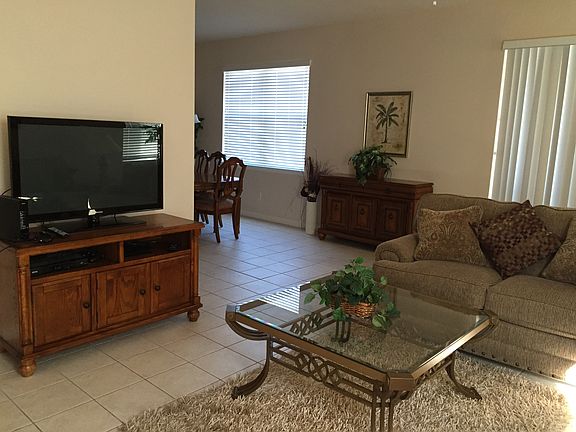 Beautiful home , fully furnished and oversized corner lot. The current owners has been used for their vacation only. Recently painted inside and new heated pool . Carpet and house are in great condition . Enter through front door into a tied and spacious living area which overlooks the pool. There is a formal dining room just off the family room. The kitchen is fully equipped and has double front fridge, flat top stove and large pantry. For convenience the indoor laundry room is located just off the kitchen .Upstairs the house has a spacious master suite with king size bed,large closet and bathroom with double sinks. There is a second master with a queen size bed and two further bedroom which share a third bedroom Outside there is a spacious sunny deck, which is not directly overlooked, with pool and spa.The development zoned for short term rent, this can be a rental home or a beautiful residence. Sandy Ridge is just a few minutes from shops and restaurants at Champions Gate and Reunion, and great access to route I 4.just minutes way from disney parks.