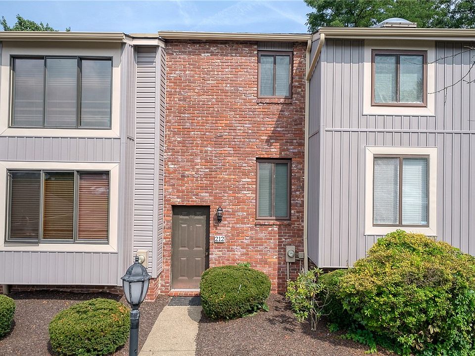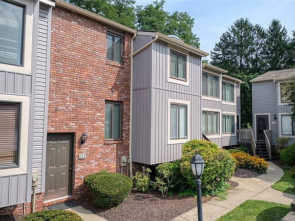 Conveniently located in a desirable Moon Township neighborhood. Beautifully remodeled 2-bedroom 2 full bath condo w/ desirable floor plan provides a warm, welcoming interior space, 1st floor bedroom w/ master bath, well-proportioned rooms to fit king beds, add’l 2nd floor loft space, vaulted ceiling w/ skylights & wood-burning brick fireplace. Open living/dining room space is full of natural light from skylights & sliding glass door to back deck, perfect for entertaining or a garden. The main bathroom was fully renovated w/ new tile floor, granite countertop, vanity, toilet, tub & modern subway shower tile. MANY UPDATES: Newer stainless kitchen appliances & LVP flooring, both bedrooms & loft new carpeting, new window treatments, switches & outlets throughout. Kitchen updated w/ freshly painted cabinets, new flooring, lighting & exhaust vent. Huge walk-out basement provides water softener, washer/dryer & plenty of storage, leaving your detached garage w/ keypad free for actual parking.