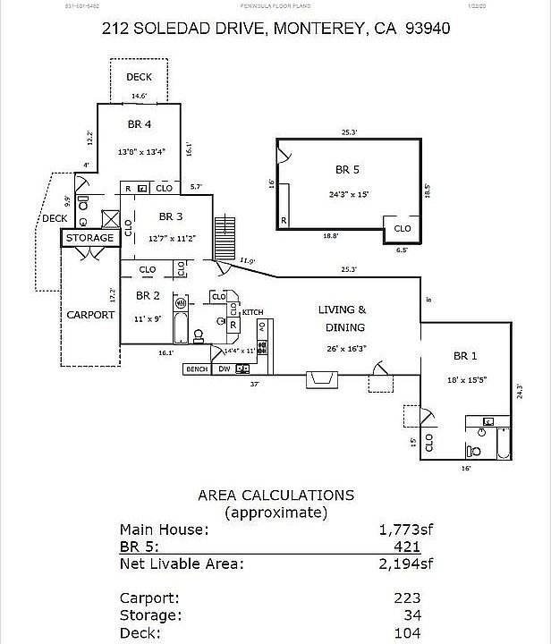This 2194 square foot single family home has 4 bedrooms and 3.0 bathrooms. This home is located at 212 Soledad Dr, Monterey, CA 93940.