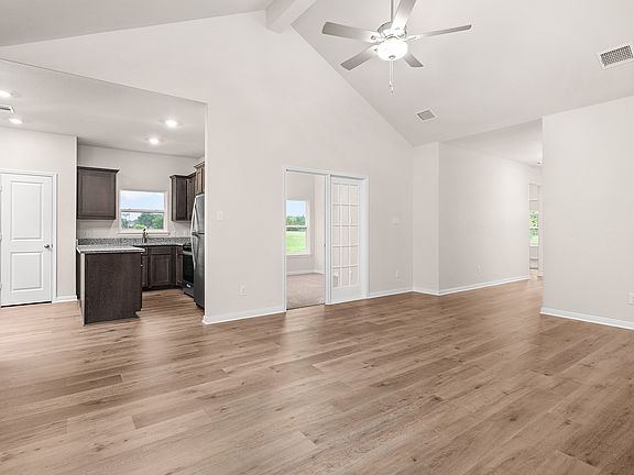 The Sabine is a thoughtfully designed three-bedroom, two-bathroom home with an open-concept layout that seamlessly connects the upgraded kitchen to the expansive family room, making it perfect for gatherings and everyday living. The upgraded kitchen is equipped with beautiful wood cabinetry, granite countertops, energy-efficient appliances, and a convenient island for extra workspace and casual dining. A versatile flex room just off the family room provides endless possibilities, whether used as a home office, gym, craft room or playroom. With ample storage throughout—including walk-in closets in every bedroom, a spacious pantry, and multiple linen closets—the Sabine is designed for both comfort and organization.