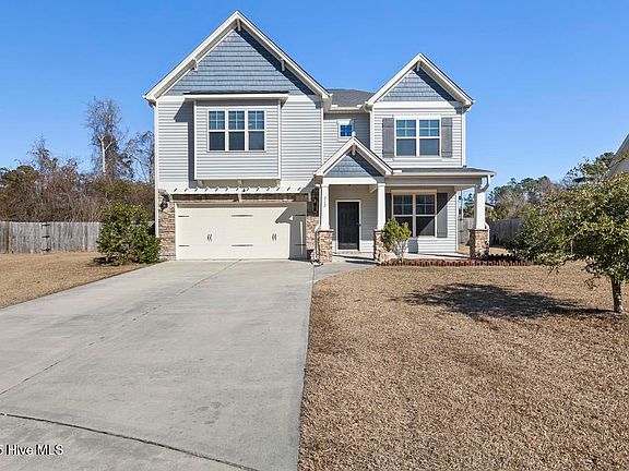 Back on the market at no fault to the sellers. Welcome to 212 Spoonbill Court, a beautifully maintained 5-bedroom, 3.5-bathroom home nestled in the highly sought-after Park Place at Hammocks Beach community in Swansboro, NC. Perfectly situated on a cul-de-sac lot, this home boasts stunning curb appeal and an unbeatable location, just minutes from Camp Lejeune, area beaches, shopping, and more. As you step inside, you'll be captivated by the gorgeous wood-patterned tile flooring and 9' ceilings that greet you in the foyer. To your left, a cozy den offers an ideal space for a home office or playroom. The formal dining room is a true showstopper with its exquisite wainscoting and coffered ceilings, providing an elegant setting for gatherings. The spacious living area is perfect for relaxation, featuring a charming fireplace that adds warmth to those cozy nights in. The heart of the home, the kitchen, is a chef's dream, showcasing stunning granite countertops, pristine white cabinets, stainless steel appliances, and a massive walk-in pantry. A cozy breakfast nook off the kitchen offers a peaceful spot to enjoy your morning coffee, overlooking the fully fenced backyard. Upstairs, the grand primary suite is your private retreat, featuring elegant tray ceilings, dual large walk-in closets, and a luxurious ensuite bathroom with a tiled shower, soaking tub, and dual vanity sinks. Four additional bedrooms, a Jack and Jill bathroom, another full bathroom, offering plenty of room for guests. This stunning home has it all and won't last long. Schedule your showing today and experience the charm of 212 Spoonbill Court for yourself!