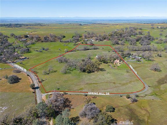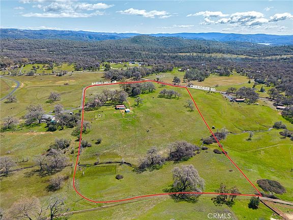 This beautiful Mediterranean-style home is nestled at the top of Table Mountain in the historic area known as Cherokee. The main house features stunning tile floors throughout, two bedrooms, two bathrooms a spacious kitchen that opens up to the living room, large mud/laundry room with tons of storage and a HUGE bonus room above the garage with the most amazing 360-degree views. The master bedroom has a fireplace, large walk-in closet, and an attached master bath with a separate shower and soaking tub. The kitchen features granite countertops, maple cabinets with pull-out drawers for pots and pans, stainless steel appliances, and a great nook area with an abundance of sunlight. The large bonus room can be used as a bedroom, game room, home office or media room – the opportunities are endless! Adjacent to the main house is a 1 bedroom 1 bathroom casita with engineered hardwood floors, room for a bed/desk and the bathroom has its own shower, toilet, and sink with on-demand hot water. Need or want an outdoor kitchen, the enclosed gazebo has a built-in BBQ, mini refrigerator, new windows, and plenty of room for entertaining! If you’re looking for a place for your animals or a shop, the 1800sq barn has two stalls, a tack area, and an insulated workshop wired with 220 and 100 AMP service panel. Near the barn is a steel livestock shelter with matted floors, wateres, and two 6-foot fenced enclosures. The entire 20 acres is fenced and cross-fenced, including a separate garden area with raised beds, automatic irrigation, fruit-baring trees and a mini vineyard all surrounded by a 6-foot fence to keep the deer out. There is a seasonal creek that runs through the back of the property and you can enjoy the wildflower bloom that Table Mountain has to offer each Spring in your own yard. Centrally located between Oroville, Chico and Paradise this is a must-see property if you’re looking for a country living close to town!