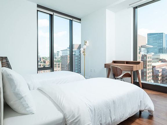 Experience breathtaking views of the Boston skyline and Back Bay in this luxurious 2-bedroom, 2-bathroom penthouse. Located on a high floor, this apartment offers a full-size gym, rooftop access, and two elevators for your convenience. Ideal for business travelers, medical professionals, and corporate clients, you'll feel at home in this beautifully designed space. This luxury home features gourmet kitchens with Shaker-style birch cabinets, tile floors, and granite countertops. The apartment includes a comfortable memory foam mattress bed, a 60" Smart TV, a dedicated workspace, and a fully equipped kitchen with Energy Star GE stainless steel appliances. Enjoy the convenience of an in-unit washer and dryer. Parking is free for monthly stays. The fitness center and business center are available at no additional cost. Enjoy the club room with video conferencing capabilities and a caterers' kitchen, as well as meeting rooms with a 58" LCD screen and surround sound. Situated in the heart of Boston, this apartment offers easy access to the city's vibrant culture and attractions. With stunning views of the Boston skyline, you'll be close to everything the city has to offer, including shopping, dining, and entertainment options. Quiet hours are from 9pm to 9am. Smoking and events are not allowed, with a violation penalty of $1000. All guests over 18 must submit a copy of their ID. Please do not interact with building staff or maintenance team; communicate directly with your host. Ensure all windows and doors are closed and locked when leaving, and dispose of food and beverage leftovers outside the apartment. Includes a dedicated workspace with a work desk, lamp, and your choice of wired or wireless Internet access. Ideal for remote work, the apartment is equipped with lightning-fast Wi-Fi.