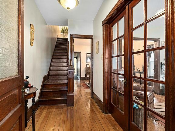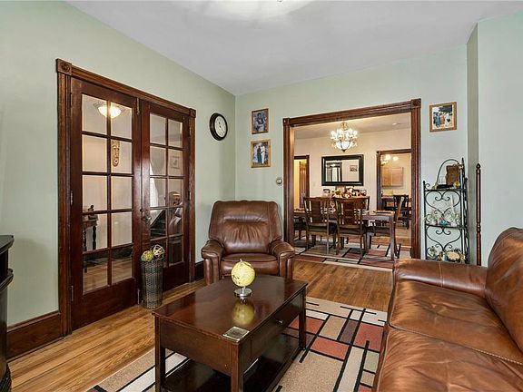 Nicely maintained 3-4 bedroom 2 full bathroom home. Modern eat-in kitchen w/ plenty of storage and counter space. Beautiful wood floors and woodwork throughout most of first floor. Covered rocking chair front porch. Foyer entry through front door. French doors lead to Living Room. Dining Room access between Living Room and Kitchen. Laundry on the first floor. Off-street parking in the back of the house. Spacious deck and fenced in back yard. Third floor is partially finished offering the potential for a fourth bedroom or office. Sale is contingent upon seller finding a house. Truly move in ready. You will appreciate the updates and space throughout.
