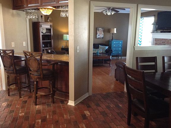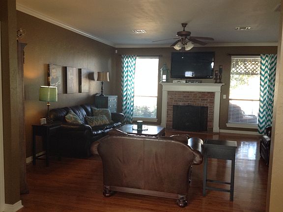 Check out this stunning home on a cul-de-sac in the Summit Lakes addition. The home offers 4 bedrooms, 3 bathrooms, study (or additional bedroom), 2 large living areas with one being downstairs and one up. There is also a separate dining area and large kitchen with bar. Kitchen also features granite counter tops, stainless steel appliances, copper sink beautiful brick flooring in kitchen and dining area and lots of cabinet and storage space. Entry and living room have hardwood floors and living room downstairs includes gas fireplace. Masterbath has double sink, jetted tub, separate shower. Feel safe with the in-ground storm shelter in the garage and be sure to notice all the extra storage space and built ins the home has to offer. Don't forget the relaxing backyard with cedar pergola over back patio, playhouse, storage shed and beautiful landscaping and sprinkler system. Enjoy a nice stroll around the lake with peaceful walking trails and a park for the children.