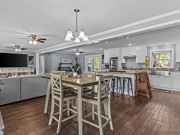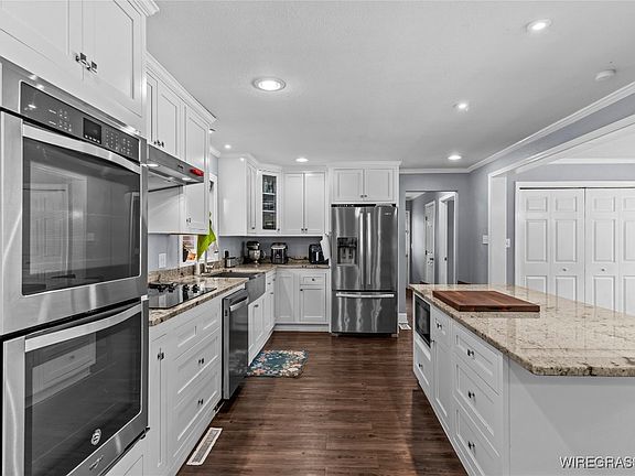 From the moment you step inside, you'll be greeted by a wide-open living concept that feels both welcoming and modern. The home has been completely renovated—featuring a metal roof, brand-new electrical and plumbing systems, new HVAC, new luxury vinyl plank flooring in main areas, fresh carpet in the bedrooms, and a stunning kitchen that will quickly become the heart of the home. Enjoy cooking and entertaining with new stainless steel appliances, elegant cabinetry, double ovens, and a large center island with breakfast bar seating. The open layout makes hosting and daily living a breeze.