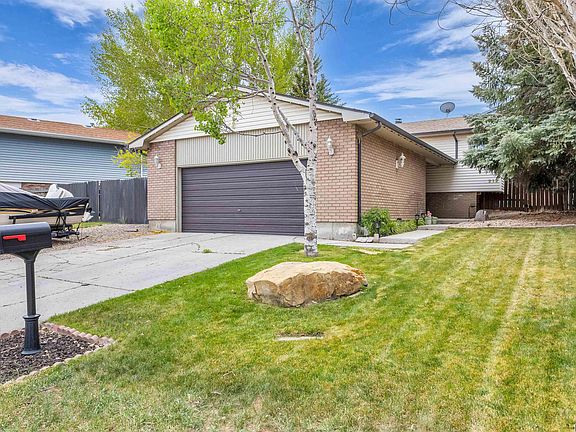 Welcome home! This spacious home is 4 bedroom 2.25 bathrooms with an open concept kitchen and living area. There is a walk out back door just off the dining room perfect for having dinner on the patio on a nice summer night! There are three bedrooms as well as two bathrooms on the upstairs floor. Going downstairs you have a cozy living room featuring a gas fireplace as well as a large bedroom, open laundry room and a half bathroom. Stepping outside you have a very large deck, a storage shed with a built-in sauna and cold plunge plus a large grassy area on the side. There is an additional covered patio on the side of the house that offers a very private seating area. In addition to a 2 car garage, there is plenty of RV parking as well! For a private showing please call Katelyn Buller with House to Home Real Estate at 307.922.2291. *Listing Agent is related to the sellers.